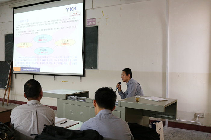 本次招聘会首先由公司负责人向在场的同学放映了公司的视频宣传片,展示了公司自建立以来,秉持着“善之循环”精神的作为,介绍了作为隶属世界最大、最著名拉链制造商日本YKK集团的中国境内最大的全资子公司的历程。随后,负责人以ppt的形式就公司性质和规模,酬薪和活动,以及公司之前承建的各个项目等企业历史一一向同学们做了详细的介绍。并对招聘职位做了具体的阐述。最后,公司负责人耐心解答同学们对感兴趣职位的提问;并及时与其沟通了解他们就业心态和就业意向,帮助他们走好职业生涯的第一步。